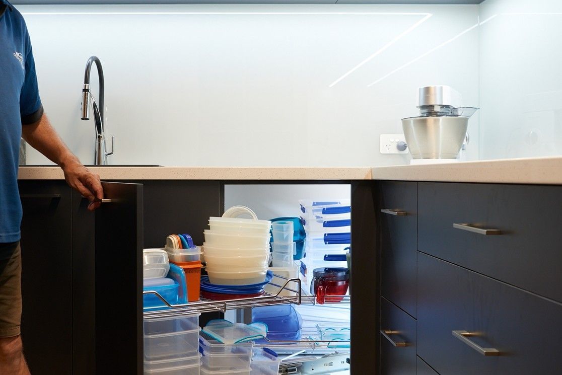 At KitchenWise our design team can help maximise every millimetre of your storage space with pull-out storage solutions integrated in your custom-designed cabinetry.