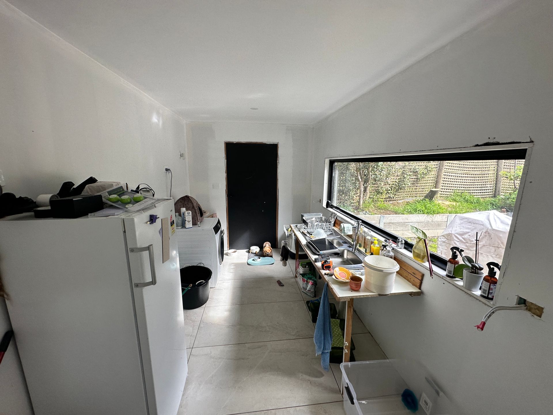 - Cooktop wall: Benchtop and splashback into window reveal Demoos Dekton
