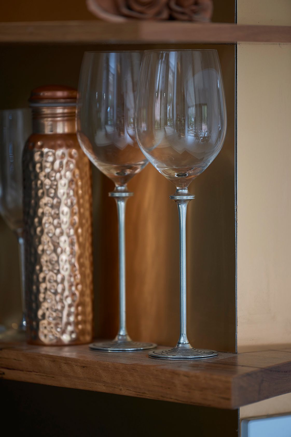 There is ample task lighting with under-cabinet LED strip lights, while feature lights add extra design elegance to the copper laminate kickrails and Wormy Chestnut display cabinets.